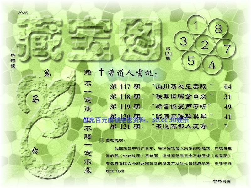 122期藏寶圖新:割鲜籍草酒淋漓 老:日暮沙场飞作灰 禁:猴 禁:0尾 玄機字:《将》